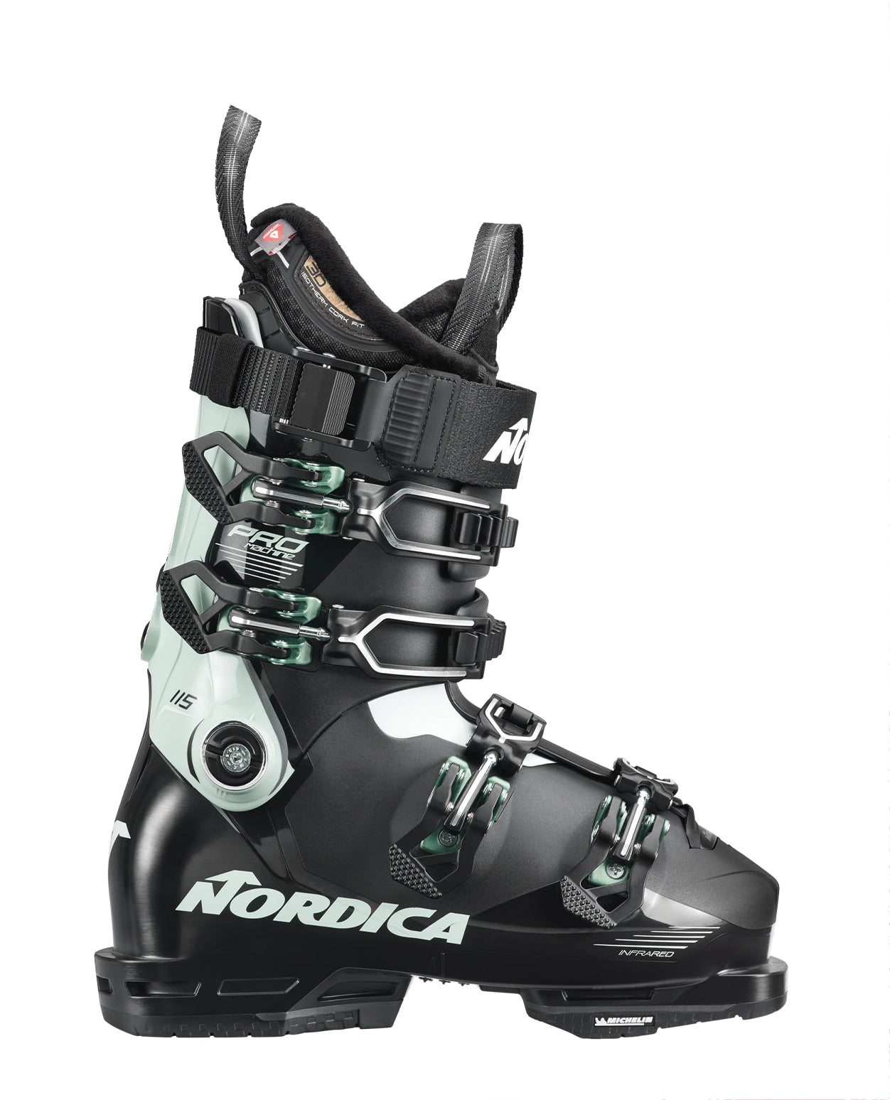 NORDICA PROMACHINE 115 W GW Letar du efter en pjäxa som har prestanda racepjäxa men komfort All Mountainpjäxa? Inspirerad av våran Dobermann racelinje Promachine högre manschett för ökat stöd, medan det lägre skalet och 98mm läst ger låg vikt. Skalet använder sig mjukare plast över insteget att bättre forma runt foten styvare längs baksidan på skapa sidostabilitet snabb energiöverföring. Primaloft® i fodret ökar komforten värmen. Om behövs kan enkelt anpassa pjäxan ytterligare med infraröd uppvärmning, vilket ger ännu mer exakt passform dina fötter. Kör njut den behöver förtjänar. Flex index: Läst: 98 mm Volym: Narrow Storlekar: MP 22,0 - 27,5 Shell: Bimat PU Cuff: Liner: Isotherm 3D Cork Soles: Gripwalk Extra-Grip Buckles: 2 Micro Alu Light, Light