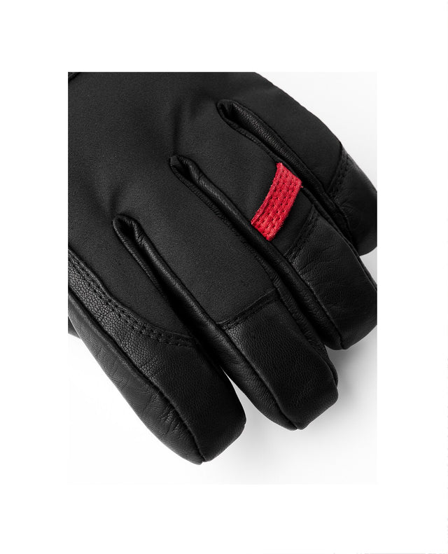• Slitstarkt och flexibelt yttermaterial: Hestra Flextron softshell på handrygg och skaft ger vind- och vattentålighet, medan impregnerat getskinn i handflatan ger grepp och hållbarhet.